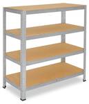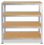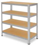 - Lieferumfang: 4x Unterzug 40 cm, 4x Plastikfüße, 4x HDF Böden 120x40 cm, 4x Standelemente / Steher 115cm, 8x Traverse 120 cm, 8x Traverse 40 cm, 1x Aufbauanleitung, Aufbauvideo bei YouTube