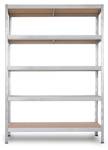 Das schraubenlose RIVET Budget 180x120x40 cm (HxBxT) Metallregal mit 5 HDF-Platten in Zinkoptik ist eine zuverlässige Aufbewahrungslösung, auch für Räume mit anspruchsvollen Bedingungen. Das RIVET-Befestigungssystem mithilfe von Nieten sorgt für eine sehr hohe Stabilität und eine solide Steckkonstruktion des schraubenlosen Metallbodens. Der Aufbau gelingt einfach und schnell. Das Metallregal kommt mit der neuesten Art von HDF-Platten mit einer Dicke von 4 mm. Es hat eine versiegelte Oberfläche, die das Metallregal widerstandsfähiger gegen Feuchtigkeit und Schimmel macht. Dank hochverdichteten Holzfaserplatten hält es auch anspruchsvolleren Belastungen stand (bis zu 800 kg / m3). Es ist recycelbar und bei Bedarf einfach zu lackieren. Wir empfehlen zusätzlich, es an der Wand zu verankern. So können Sie die maximale Tragfähigkeit problemlos nutzen!