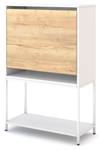 Hochwertige Ausstattung:Dank robustem Metallkorpus steht der Sekretär stabil und sicher. Die kratzfeste Oberfläche ist langlebig und pflegeleicht. Ein Highlight ist die Blende in Holzoptik, die dem Möbelstück eine warme, wohnliche Note verleiht.