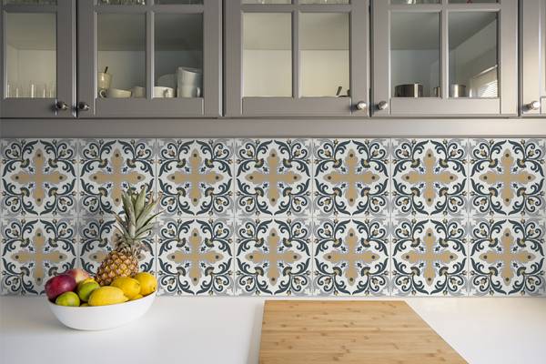 6. Fliesen fugenlos nebeneinander aufkleben, auf Muster achten