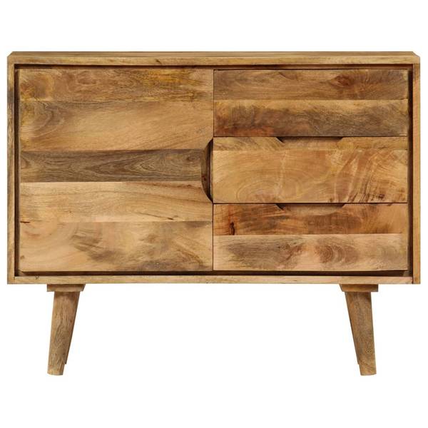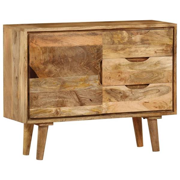 Der Schrank ist handgefertigt aus Mangoholz, das solide, stabil, langlebig und schön ist, und die Handwerkskunst trägt zu seinem spektakulären Retrostil bei. Die Handwerkskunst und die schönen Holzmaserungen machen jedes Möbelstück einzigartig und unverwechselbar. Das Sideboard ist mit viel Stauraum ausgestattet und hält Ihre Zeitschriften, Bücher, DVDs und Multimedia-Geräte gut organisiert und in Reichweite. Wichtiger Hinweis: Die Farben variieren von Stück zu Stück, was jeden unserer Seitenschränke einzigartig macht.