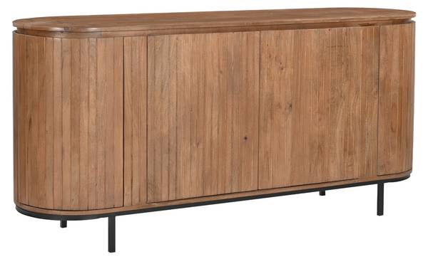 Bringe mit dem Noor Sideboard von Livingfurn eine stilvolle Kombination aus Luxus und Funktionalität in Dein Zuhause. Das hochwertige Mangoholz, das über die gesamte Höhe verarbeitet ist, verleiht diesem Möbelstück einen edlen, natürlichen Look mit einem Hauch von Glamour.