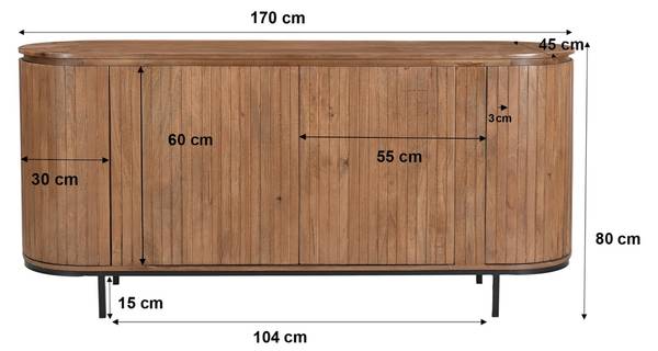 Die klaren Linien und das durchgängige Holzdesign machen das Sideboard zu einem echten Hingucker – ganz gleich, ob Du es im Wohn-, Ess- oder Flurbereich einsetzt. Der edle Glanz des Holzes bringt Wärme und zeitlose Eleganz in jeden Raum.