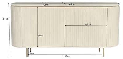 Das elegante Lamellenmuster und die grifflosen Türen sorgen für einen modernen, schicken Look und machen das Sideboard zu einem echten Blickfang in deinem Wohn- oder Essbereich. Mit seiner hochwertigen Verarbeitung verbindet das Patou Sideboard Funktionalität und Design auf perfekte Weise.