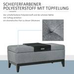 ● Farbe: Dunkelgrau+Schwarz; ● Material: Polyester, Schaumstoff, MDF, Eukalyptusholz; ● Belastbarkeit: 120 kg; ● Gesamtmaße: 107L x 50B x 44H cm; ● Stauraumabmessungen: 98L x 41B x 19H cm; ● Tablettgröße: 53L x 36B x 10H cm