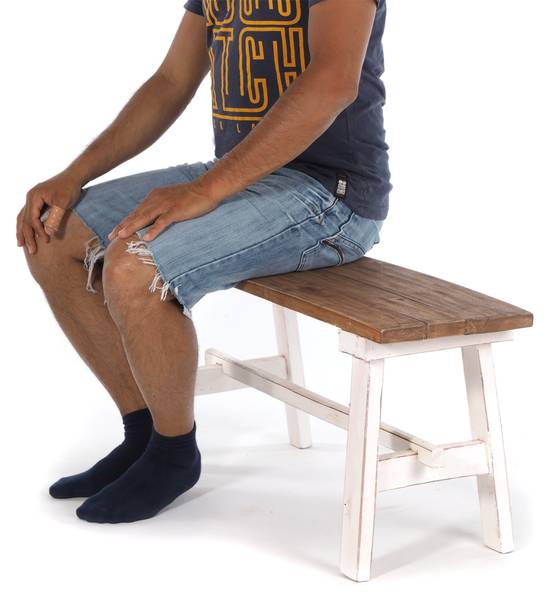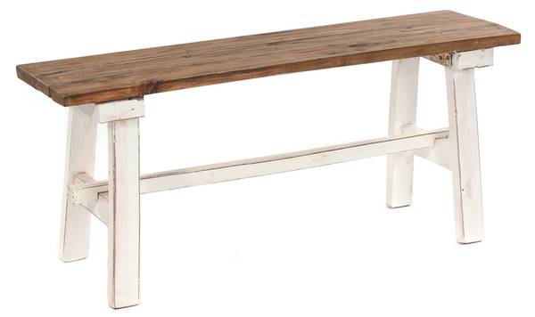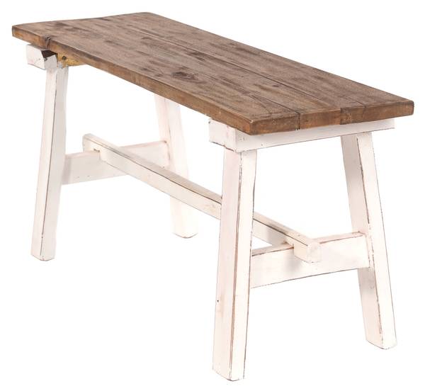 - Material: vintage Holz, massiv; Risse und Unebenheiten unterstreichen den Charakter der Bank.