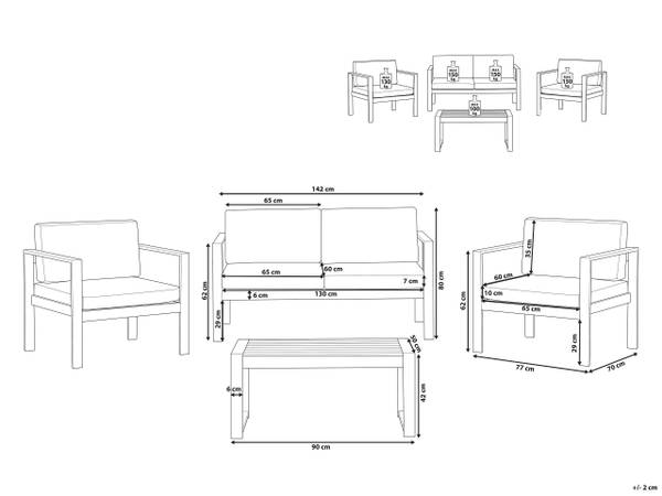 - Lieferumfang: 1 x Couchtisch, 1 x Sofa, 2 x Sessel