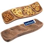 Ein handgefertigter Holzteller für Snacks. Perfekt geeignet für das stilvolle Servieren von salzigen Snacks, Süßigkeiten oder Dips. Die geteilte Oberfläche ermöglicht eine angemessene Trennung der Snacks, um die Geschmäcker nicht zu vermischen. Wegen der sachgemäßen Pflege wird das Reinigen in der Spülmaschine nicht empfohlen. Das Originalprodukt der tschechischen Marke Orion. Gemäß den europäischen Normen hergestellt.