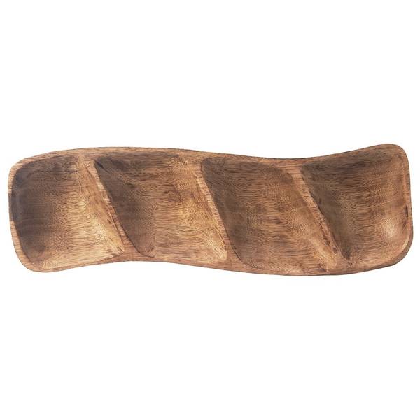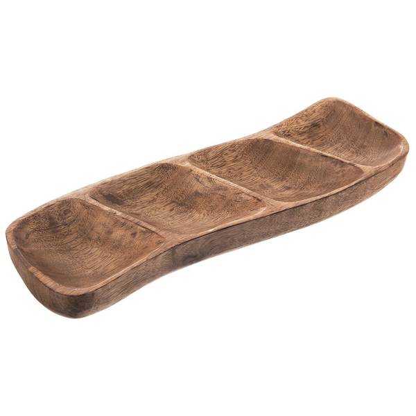 - UNTERTEILT - Ein Teller für Snacks, der in vier Teile unterteilt ist. Der Servierteller hat Abmessungen von 35 x 11 x 4 cm.