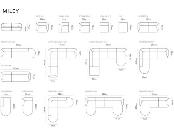 Die modernen Miley-Sofas - mit ihren abgerundeten Formen - passen perfekt zu den neuesten Trends in der Inneneinrichtung. Neben ihrer einzigartigen, minimalistischen Form sind sie auch sehr komfortabel. Die niedrige, umhüllende Rückenlehne geht in profilierte Armlehnen über und schafft so einen sehr natürlichen Raum. Diese Sofas bieten außerdem in jeder Position, ob sitzend oder liegend, eine angemessene Unterstützung. Ihre abgerundeten Sitze mit dicker, elastischer Polsterung fördern die Entspannung und ihr leicht erhöhtes Design vermittelt ein schwebendes Gefühl.