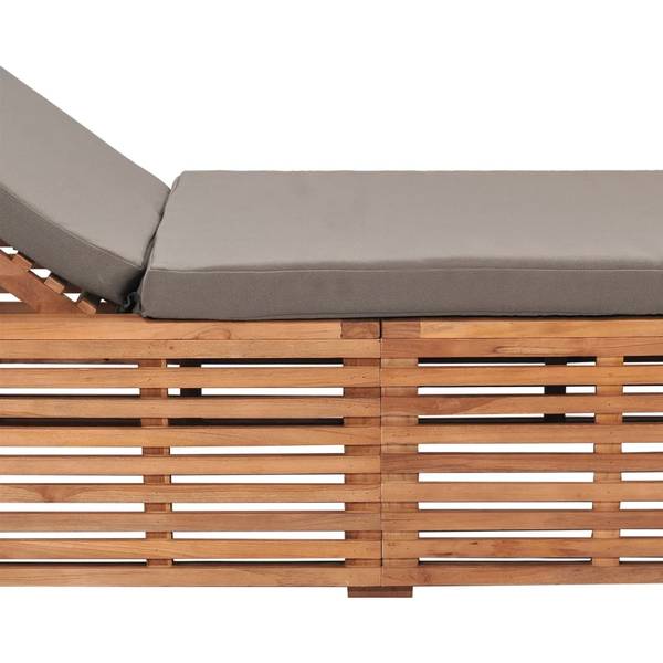 Das für dieses Möbelstück verwendete Teakholz ist technisch getrocknet und anschließend fein geschliffen worden, um ein sehr glattes Erscheinungsbild zu erhalten. Teakholz ist für seine außergewöhnliche Festigkeit und Witterungsbeständigkeit geschätzt und eignet sich daher weitaus besser für Gartenmöbel als jede andere Holzart. Teakholz ist die perfekte Wahl, wenn Sie sich ein langlebiges Gartenmöbel anschaffen möchten. Das mitgelieferte Kissen sorgt für mehr Komfort beim Ausruhen. Die Rückenlehne kann in 4 Positionen geneigt werden, sodass Sie sie nach Ihren Wünschen einstellen können.