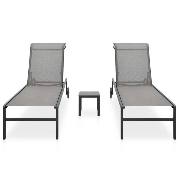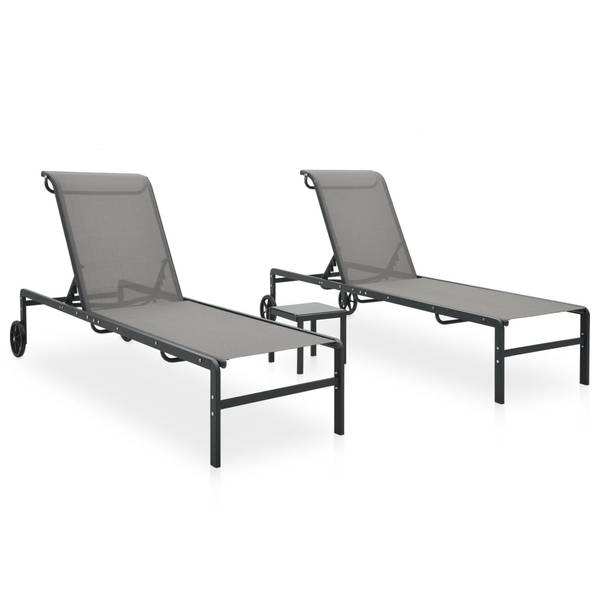Sitz und Rückenlehne bestehen aus robustem Textilene, sodass sich die Sonnenliegen nicht nur einfach reinigen lassen, sondern auch strapazierfähig und für den täglichen Einsatz im Freien geeignet sind. Die Sonnenliegen und der Tisch verfügen über stabile Stahlrahmen, wodurch sie stabil, langlebig, leicht und einfach zu umstellen sind. Auf dem Beistelltisch können Sie Handys, Bücher, Snacks oder Getränke griffbereit aufbewahren. Dank der verstellbaren Rückenlehnen können Sie außerdem stets die bequemste Sitz- bzw. Liegeposition finden. Zusätzlich kann die Sonnenliege mit den ausgestatteten 2 Rädern leicht umstellt werden.