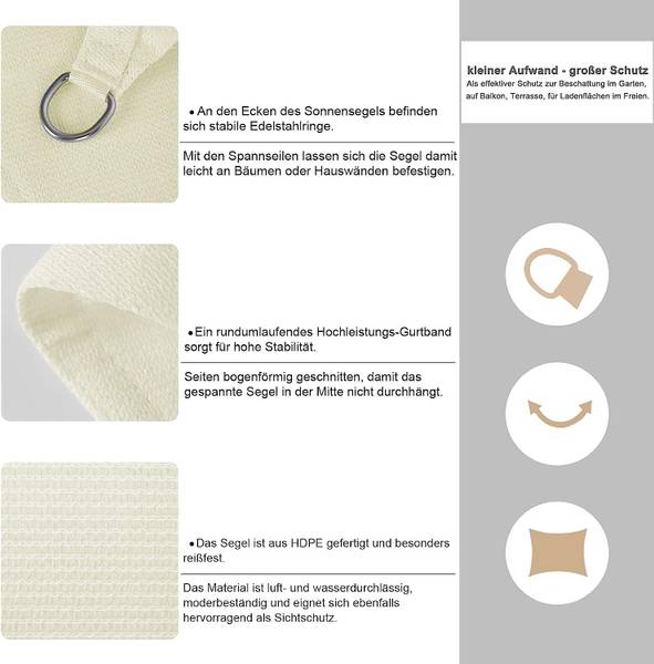 - Des Sonnesegel ist aus HDPE, kein Hitzestau, da wasser- und winddurchlässig.