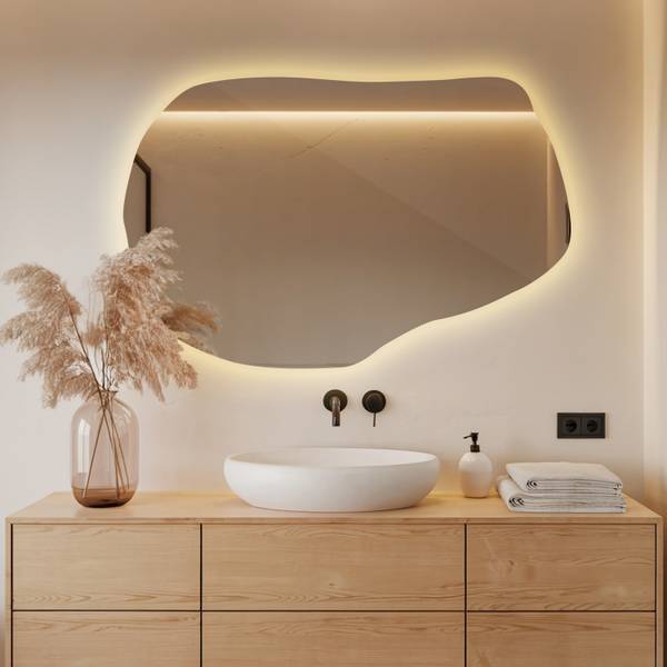Optimales Licht & elegantes DesignUnsere Spiegel sind mit einer energieeffizienten LED-Beleuchtung ausgestattet, die eine Lebensdauer von ca. 50.000 Stunden bietet. Die Lichtfarbe ist fest (Warmweiß 3000K, Neutralweiß 4000K oder Kaltweiß 6500K) und der jeweiligen Auktion zugeordnet – eine Änderung ist nicht möglich. Die LEDs sind am gesamten Spiegelumfang (ca. 3 cm vom Rand) angebracht und nicht dimmbar. Bitte beachten Sie, dass der Spiegel weder über einen Touch-Schalter noch eine Anti-Beschlag-Funktion verfügt.