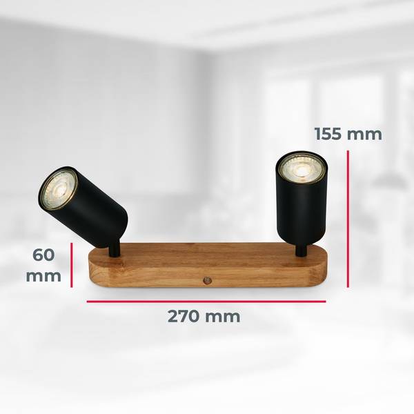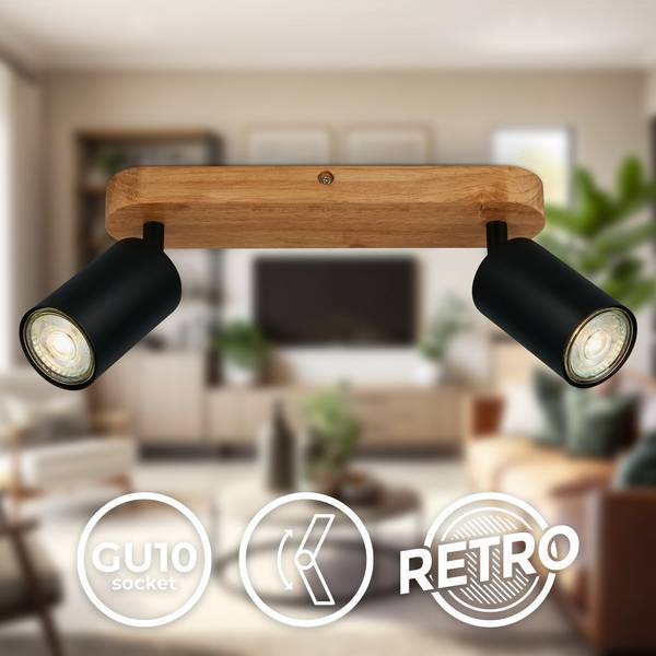 - Vintage-Design mit Holzbasis: Der 2-flammige Deckenspot kombiniert schwarzes Metall mit einer stilvollen Holzbasis, ideal für Interieurs, die einen rustikalen oder Vintage-Stil bevorzugen