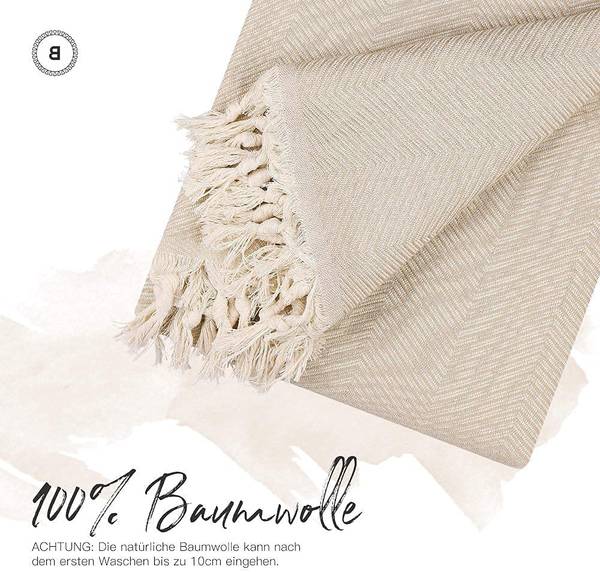 PFLEGELEICHT: Waschbar in der Waschmaschine bis 30°C. Bitte nicht bleichen oder im Trockner trocknen. Wichtig: Da unsere Decken aus 100% reiner Baumwolle bestehen, können sie nach dem Waschen um einige Zentimeter eingehen.