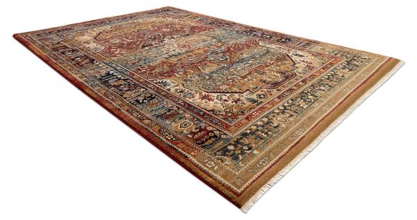 ▪ Zusammensetzung: 100% natürliche Wolle Lieben Sie Luxuslösungen? Wenn ja, dann sind Wollteppiche perfekt für Sie.Stellen Sie sich Ihren Lieblings-Wollpullover vor... Warm und weich. Wenn Sie ihn anfassen, fühlen Sie sich sehr wohl.Was wäre, wenn ein Teppich aus dem gleichen Material hergestellt wäre? Es ist möglich. Wolle ist bei weitem das beste natürliche Material, das für die Herstellung von Teppichen verwendet werden kann.Die KESHAN Teppichkollektion wurde aus 100% Wolle hergestellt. Sie ist ein natürlicher und vollständig erneuerbarer Rohstoff.Seine Eigenschaften sind perfekt für Häuser, in denen es schwierig ist, die richtige Luftfeuchtigkeit zu halten.Wolle nimmt Feuchtigkeit aus der Luft auf, wenn es zu viel davon gibt, und gibt sie wieder ab, wenn sie fehlt. Das ist sehr gesund für das Atmungssystem, besonders für Menschen, die damit Probleme haben.Ein Wollteppich ist auch ein großartiger Wärmeisolator. Sie können ihn sogar auf einen kalten Fußboden legen, und das Gehen darauf wird immer noch angenehm sein.Der Innenraum erhält eine zusätzliche Isolierung, dank derer es einfacher ist, die richtige Lufttemperatur zu halten.Charakteristische Eigenschaften der KESHAN-Teppiche:- Hergestellt aus 100% natürlichem Wollmaterial. Daher ist es umweltfreundlich- Elegante und schöne Farben, kombiniert mit einem Muster im Vintage-Stil, bringen viel Eleganz und Luxus in jedes Interieur- Er hat das OEKO-TEX-Zertifikat, das eine für die Umwelt und den Menschen sichere Zusammensetzung garantiert- Die höchste Qualität in Verbindung mit hoher Widerstandsfähigkeit des Materials und seiner Flexibilität machen dieses Produkt zu einer schönen Dekoration für viele Jahre- Ein Teppich aus Wolle kann anfangs leicht stauben - das ist eine natürliche Eigenschaft dieses Materials. Wir versichern Ihnen jedoch, dass dies in keiner Weise lästig oder schädlich ist.