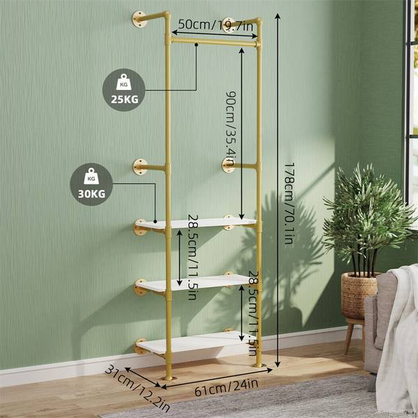 Haltbar und langlebig -- Dieser Kleiderständer ist sehr robust und kann an einer festen Wand installiert werden. Besteht aus kräftigem Stahlrohr, Sie können viele Mäntel Jacken oder Kasten Blumentopf darauf legen und müssen sich nicht um das Gewicht kümmern. Es kann mehr als 115kg belasten.Jede Ablagen kann bis 30kg und die Stange kann bis 25kg belasten.