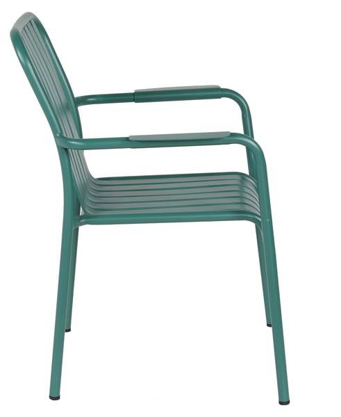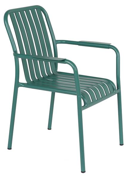 Bringen Sie Komfort und Eleganz in Ihren Außenbereich mit unserem stapelbaren Gartenstuhl aus Aluminium mit Armlehnen. Dieser Stuhl bietet die perfekte Balance zwischen Haltbarkeit und Stil, sodass Sie sich entspannen und gleichzeitig Ihrem Garten eine ästhetische Note verleihen können. Dieser Gartenstuhl ist aus hochwertigem Aluminium gefertigt und sowohl leicht als auch robust. Durch das stapelbare Design lässt es sich bei Nichtgebrauch leicht verstauen und ist somit ideal, um in Ihrem Garten, auf der Terrasse oder dem Balkon Platz zu sparen. Die farbige Pulverbeschichtung verleiht dem Stuhl nicht nur ein schönes Aussehen, sondern bietet auch zusätzlichen Schutz vor Kratzern und Witterungseinflüssen. Diese UV-beständige Beschichtung sorgt dafür, dass die Farbe auch bei dauerhafter Sonneneinstrahlung nicht verblasst. Die ergonomischen Armlehnen dieses Gartenstuhls sorgen für optimalen Komfort und zusätzlichen Halt. Egal, ob Sie entspannt ein Buch lesen oder eine Mahlzeit im Freien genießen möchten, Armlehnen bieten den Komfort, den Sie brauchen. Mit einer Tragkraft von bis zu 100 kg bietet dieser Gartenstuhl den meisten Benutzern sicheren Sitz. Egal, ob Sie einen Abend mit Freunden verbringen oder einen Moment der Entspannung allein verbringen möchten, Sie können sich beruhigt zurücklehnen und Ihren Außenbereich genießen. Das moderne und zeitlose Design dieses Stuhls passt problemlos zu allen Stilen der Außendekoration. Egal, ob modern oder traditionell, dieser Stuhl verleiht Ihrem Außenbereich einen Hauch von Eleganz. Maße: Höhe 85 cm, Tiefe 62 cm, Breite 61 cm, Sitzhöhe: 44 cm, Sitztiefe 44 cm und Gewicht 6 kg.