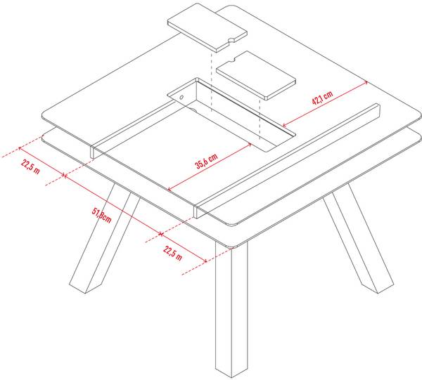 In der Mitte des Tisches befindet sich eine funktionelle Nische. Sie können Gewürze, eine Blumenvase oder einen Krug mit Getränken hineinstellen. Nutzen Sie es als Stauraum – verstecken Sie Handy-Ladegeräte oder Ersatzkabel und genießen Sie Ordnung im Wohnzimmer. Wenn Sie die ebene Fläche der Tischplatte nutzen möchten, schließen Sie einfach das Ablagefach.