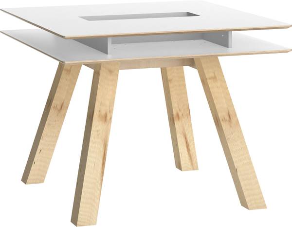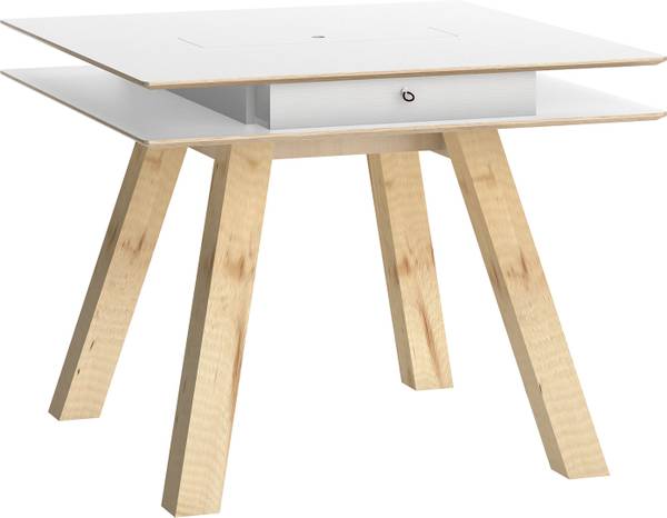 Die regelmäßig quadratische Tischplatte passt perfekt in jeden Raum. Seine abgerundeten Ecken erhöhen die Sicherheit – das ist besonders wichtig bei kleinen Kindern.