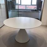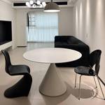 die runde Tischplatte aus Keramik ist sehr pflegeleicht