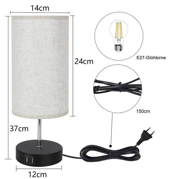 【2 USB-Ladeanschluss & Standard-E27-Sockel】Die Tischlampe Wohnzimmer hat integrierten USB-Anschluss (Output: DC 5.0V 1A) und die Ladeoptionen für Ihr Telefon, Tablet bieten. Die Ladefunktion ist verfügbar, egal ob die Lampe ein- oder ausgeschaltet ist. Das Nachtlicht ist sehr praktisch und langlebig, tragbar.Sie können andere Arten von E27-Leuchtmittel je nach Bedarf einsetzen, wie z. B. verstellbare Leuchtmittel, KaltlichtLeuchtmittel, Retro-Leuchtmittel, usw.