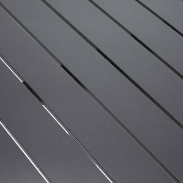 Entdecken Sie die quadratische Tischplatte aus schwarzem Aluminium, eine perfekte Wahl für alle, die Haltbarkeit, Stil und Funktionalität in einem minimalistischen Format suchen. Mit seinen Maßen von 60 x 60 cm und einer Dicke von 3 cm ist dieses Tablett zugleich kompakt und geräumig, ideal für die bequeme Unterbringung von zwei Personen. Ganz gleich, ob Sie als Profi einen Essbereich einrichten möchten oder als Privatperson Ihr Interieur verschönern möchten, dieses Tablett wird Ihren Bedürfnissen gerecht. Mit einer Breite und Länge von 60 cm bietet dieses Tablett ausreichend Platz für Mahlzeiten oder freundliche Gespräche. Sein quadratisches Design ermöglicht einen vielseitigen Einsatz, egal ob im Haus oder draußen auf der Terrasse. Dieses aus hochwertigem Aluminium gefertigte Tablett vereint Leichtigkeit und Robustheit. Mit einem Gewicht von nur 4,2 kg lässt es sich leicht handhaben, transportieren und nach Ihren Wünschen arrangieren. Darüber hinaus ist dieses Material für seine Korrosionsbeständigkeit bekannt und somit der ideale Begleiter für den Außenbereich. Die mattschwarze Farbe dieses Tabletts verleiht jeder Einrichtung einen Hauch von Eleganz. Die sorgfältige Verarbeitung mit einer glatten und gleichmäßigen Oberfläche wertet nicht nur die Ästhetik der Möbel auf, sondern erleichtert auch die Reinigung und garantiert so eine schnelle und effiziente Wartung. Es ist so konstruiert, dass es den Strapazen des Alltags standhält und dennoch wie neu aussieht. Diese Tischplatte ist unglaublich vielseitig. Für Profis ist es ideal für die Einrichtung von Gastronomieräumen wie Cafés, Restaurants oder Weinbars. Sein elegantes und modernes Design passt perfekt zu einer modernen und warmen Atmosphäre. Darüber hinaus ist es aufgrund seiner Leichtigkeit und Haltbarkeit eine kluge Wahl für Einrichtungen, die ihre Räume regelmäßig neu organisieren müssen. Für Einzelpersonen ist dieses Tablett eine ausgezeichnete Wahl für den Heimgebrauch. Ob Sie es in Ihrer Küche, Ihrem Esszimmer oder sogar auf Ihrer Terrasse oder Ihrem Balkon verwenden möchten, es passt sich allen Kontexten an. Perfekt für Brunchs, Abendessen oder einfach um einen geselligen Moment bei einem Kaffee zu verbringen, wird dieses Tablett zu einem unverzichtbaren Bestandteil Ihres täglichen Lebens.