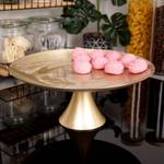 Eine Kuchenplatte mit Fuß, ideal für Torten, Kuchen oder andere Süßigkeiten. Mit der wunderbaren Goldfarbe. Dank diesem Kuchenständer werden Sie die vorbereiteten Süßigkeiten ausstellen können. Ihre klassische Form lässt sie sehr gut zu anderem Geschirr passen. Gemäß den europäischen Normen hergestellt.