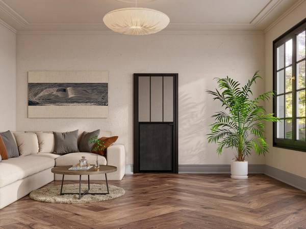 Möchten Sie Ihrem Zuhause einen modernen Touch verleihen? Entscheiden Sie sich für die Tür ERMELO, die durch den Atelier-Stil und die drei Glaseinsätze Eleganz und Helligkeit in den Raum Ihrer Wahl bringt.