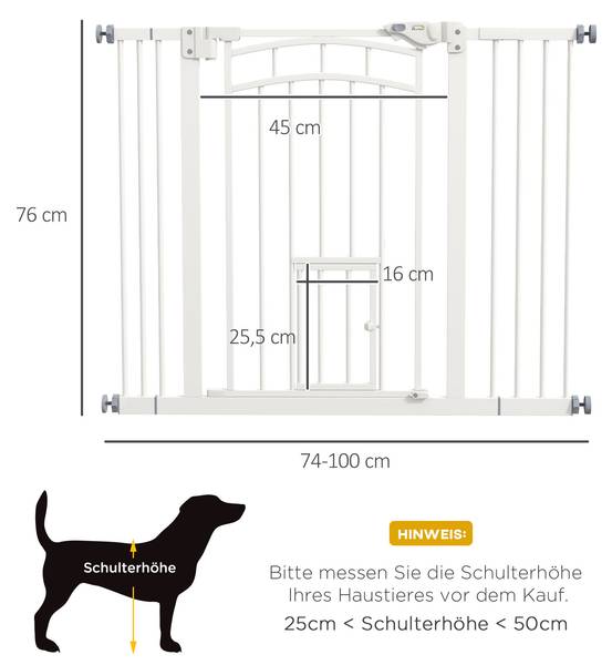 ● Zwei Verlängerungen (7 cm, 14 cm). Passt sich Öffnungen von 74 bis 100 cm an, vielseitig einsetzbar für Türöffnungen, Flure und Treppen