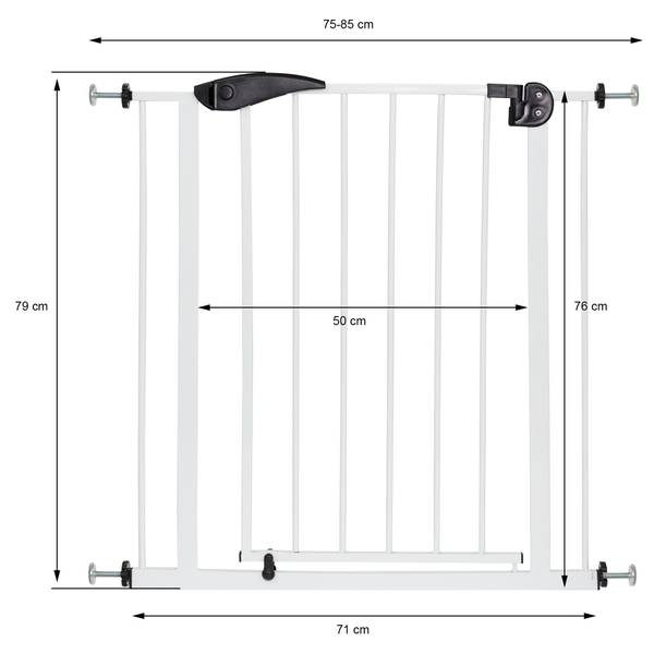 Unser Schutzgitter von ECD Germany ist die perfekte Lösung wenn du dich um die Sicherheit deiner Kinder kümmerst. Du kannst das Gitter zwischen Türrahmen oder Geländer mit Abmessungen von 75-85 cm montieren um den Zugang des Kindes einzuschränken, um mögliche Verletzungen zu vermeiden, oder einfach nur den Zugang der Kleiner von oder zu einem bestimmten Raum zu verhindern. Bestehend aus strapazierfähigem Metall garantiert unser Schutzgitter maximale Sicherheit. Die Montage erfolgt problemlos und schnell.
