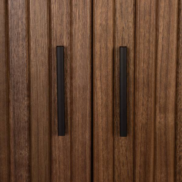 Alle Stauraummöbel der Serie sind mit pulverbeschichteten Metallfüßen ausgestattet, die das Retro-Design des Korpus schön fortsetzen und den Möbeln zusätzlich eine elegante, aber auch lässige Note schenken. Entdecke die funktionalen und stilvollen It-Pieces unserer Serie Barawoh, die im Wohn-, Ess-, Schlafzimmer sowie in deinem Homeoffice eine wohnliche Atmosphäre im Mid-Century-Look kreieren.