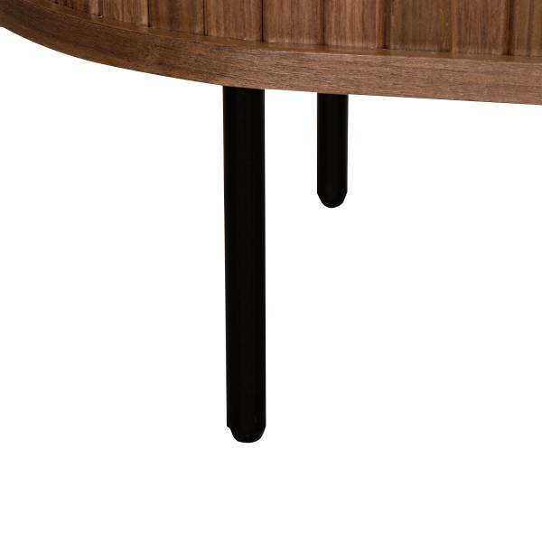 Serie Barawoh zeichnet sich durch ein einzigartiges Design aus, denn hier verbreiten abgerundete Kanten sowie Fronten in Lamellenoptik puren Retro-Charme in deinem Zuhause. Gefertigt aus lackiertem und furniertem Eichenechtholz umfasst das Seriensortiment vielseitige Stauraummöbel, wie z. B. Sideboard, Couchtisch (praktisch mit integriertem Fach!) sowie eine Nachtkommode. Darüber hinaus bietet Barawoh einen Esstisch und einen Schreibtisch im angesagten Konsolentisch-Design. Die meisten Barawoh-Möbel sind in zwei Farben erhältlich: klassisch-elegant in Schwarz oder natürlich in Eiche.