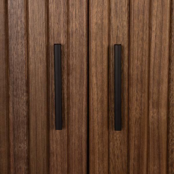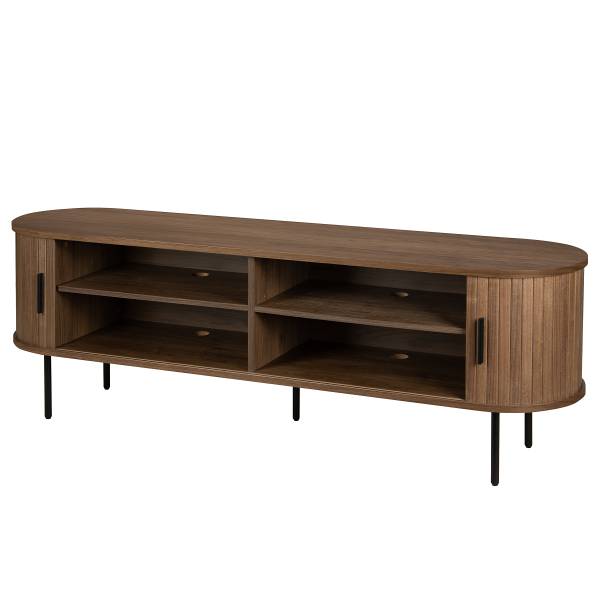 Alle Stauraummöbel der Serie sind mit pulverbeschichteten Metallfüßen ausgestattet, die das Retro-Design des Korpus schön fortsetzen und den Möbeln zusätzlich eine elegante, aber auch lässige Note schenken. Entdecke die funktionalen und stilvollen It-Pieces unserer Serie Barawoh, die im Wohn-, Ess-, Schlafzimmer sowie in deinem Homeoffice eine wohnliche Atmosphäre im Mid-Century-Look kreieren.