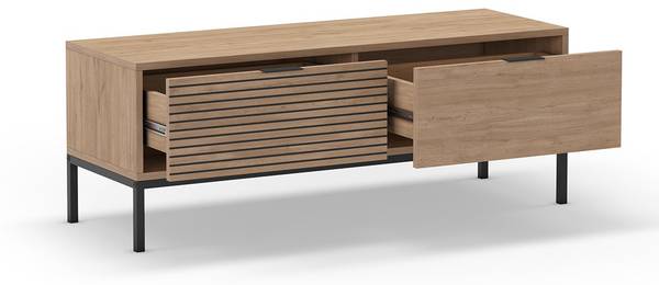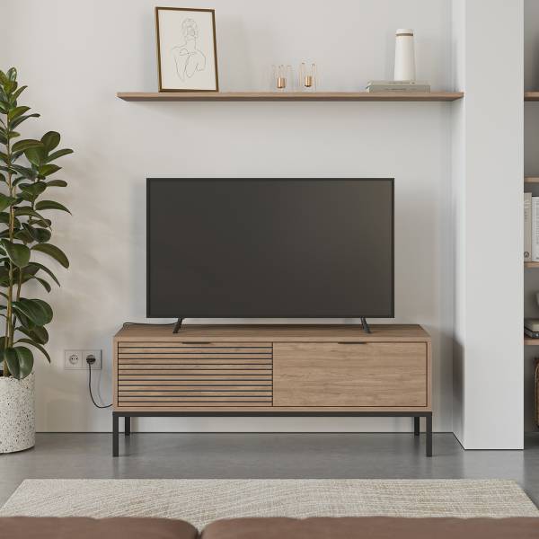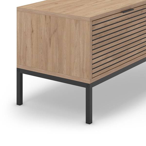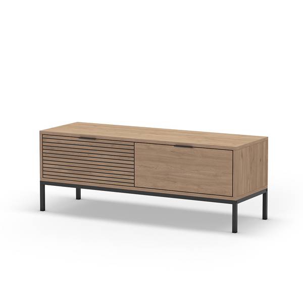 Produkteigenschaften: Hergestellt aus 18 mm melaminbeschichteten Spanplatten. Eichefarben mit schwarzen Rillen. Schwarzes Metallgestell, feine schwarze Metallgriffe. Kompaktes Format von 140 cm, perfekt für kleine Wohnräume geeignet. Es fügt sich harmonisch in Ihr Interieur ein und bietet gleichzeitig funktionalen Stauraum. Produktabmessungen: Länge 120 cm x Breite 40 cm x Höhe 55 cm - Nettogewicht: 35 kg. Verpackungsabmessungen: Paket Nr. 1: Länge 115,5 cm x Breite 60 cm x Höhe 12 cm - Bruttogewicht: 18,71 kg. Paket Nr. 2: Länge 55 cm x Breite 25,5 cm x Höhe 9 cm - Bruttogewicht: 18,72 kg. Gesamtbruttogewicht: 37,43 kg.