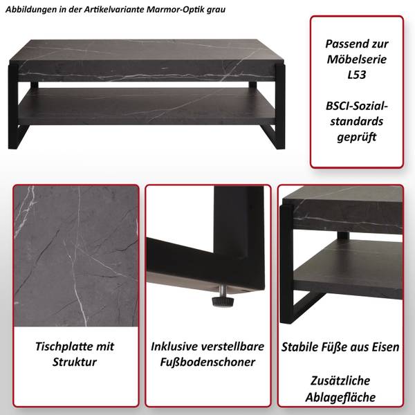 Entdecken Sie das elegante TV-Rack aus unserer L53 Möbelserie! Mit einer präzise strukturierten Tischplatte verleiht dieses Rack Ihrem Wohnzimmer einen modernen Look. Es bietet nicht nur ausreichend Platz für Ihren Fernseher, sondern auch ein zusätzliches Regal für Ihre Medienzubehörteile. Die stabilen Eisenfüße sorgen für eine solide Basis, während die verstellbaren Fußbodenschoner für Stabilität und Schutz sorgen. Die einfache Montage ermöglicht es Ihnen, den Tisch im Handumdrehen aufzubauen. Bringen Sie Ihre Unterhaltung auf ein neues Niveau mit diesem schickem Lowboard.