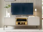Moderne RTV-Sideboard Deo ist die perfekte Kombination aus Ästhetik und Funktionalität. Die Farbe Kaschmir in Verbindung mit der LED-Beleuchtung verleiht ihm eine einzigartige Ausstrahlung. Es ist ein Möbelstück, das selbst die Erwartungen der anspruchsvollsten Kunden erfüllt.