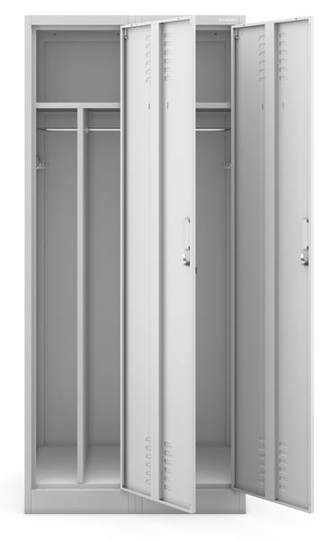 Der Stahlspind eignet sich für die Verwahrung von persönlicher Kleidung und Sachen in Schulen, Arbeitsplätzen, Fitnesszentren, Werkstätten und Industriefirmen. Er ist mit einem Riegelverschluss verschließbar. Dieses Modell besitzt eine Trennwand für saubere und schmutzige Wäsche, Belüftungsschlitze für eine optimale Luftzirkulation, 2 Flügeltüren, 2 Etikettenrahmen, 2 Fachböden, 2 Kleiderstangen und Kleiderhaken. Deshalb ist er bei den Kunden sehr beliebt.