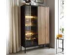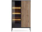 Die Kombination der Farben Graphit und Wotan-Eiche schafft einen eindrucksvollen Kontrast, der der Vitrine einen besonderen Charme und Eleganz verleiht. Darüber hinaus sorgt die eingebaute LED-Beleuchtung für eine dezente Hintergrundbeleuchtung und schafft eine angenehme Atmosphäre im Raum. Die Vitrine verfügt auch über eine eingebaute Schublade.