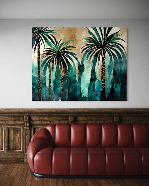 Wandbild tropische palmen aquarell
