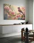 Wandbild vogel auf einem ast blumen