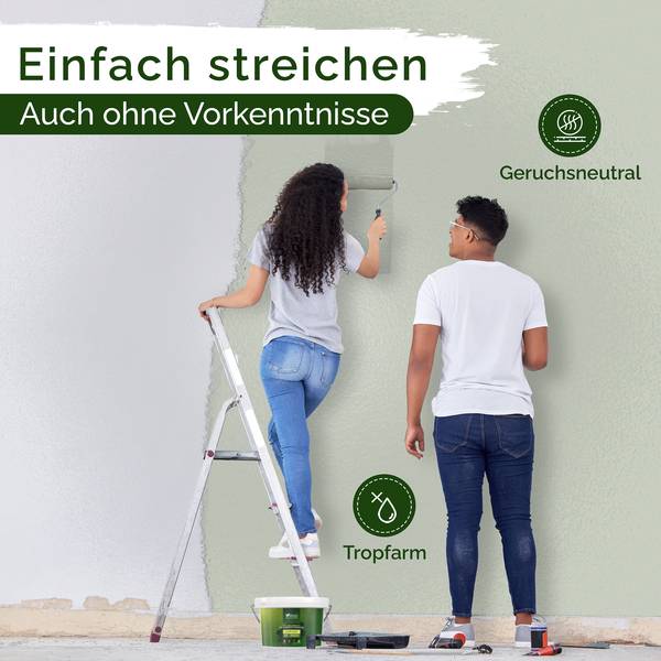 Unsere spezielle Formulierung reduziert Spritzer und Kleckse auf ein Minimum. Die Farbe ist tropfarm, schnell trocknend und nahezu geruchslos – perfekt für ein sauberes und angenehmes Streicherlebnis. Zudem ist sie frei von Lösungsmitteln, emissionsarm und besonders wohnfreundlich, auch für Kinderzimmer oder Allergiker geeignet.