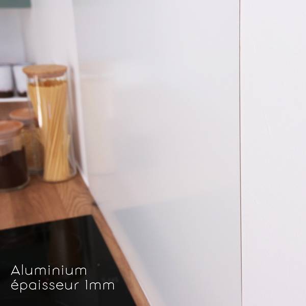 Unsere 3 mm dicke Rückwand wird in Frankreich aus hochwertigem Aluminiumverbundmaterial gefertigt, was Ihnen Langlebigkeit und zeitlose Eleganz garantiert. Die sorgfältige Oberflächenveredelung bringt eine verfeinerte Note, die das Ambiente Ihrer Küche sofort aufwertet.