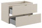 Erfrische dein Badezimmer mit unserer stilvollen Badmöbelserie in kaschmir, die Eleganz und Funktionalität meisterhaft kombiniert.