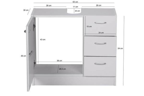 - Schublade innen: (BxTxH) 16 x 23 x 8