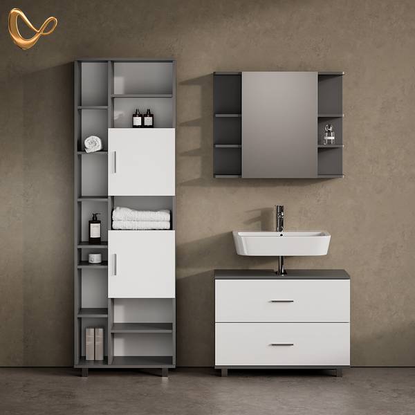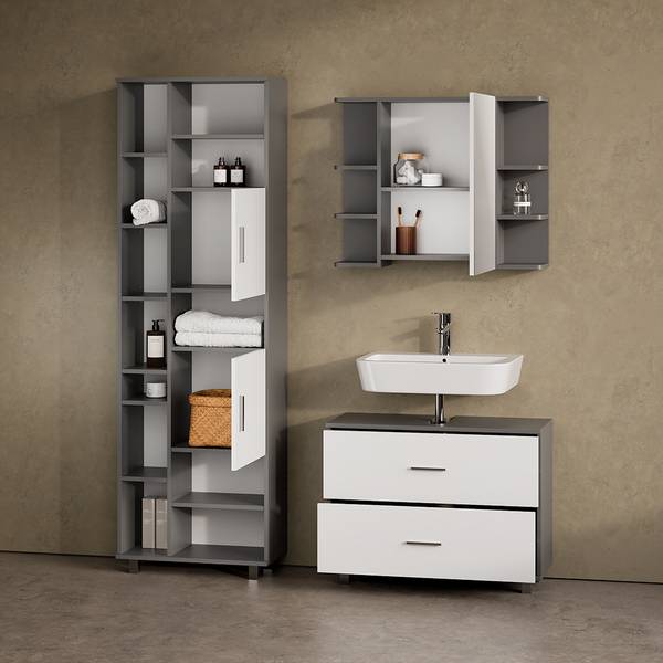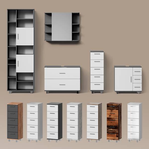 LIEFERUMFANG: Waschtischunterschrank (Dekoration nicht im Lieferumfang enthalten), Montageanleitung, Montagematerial.