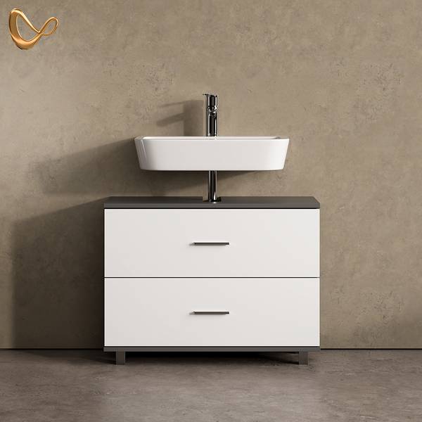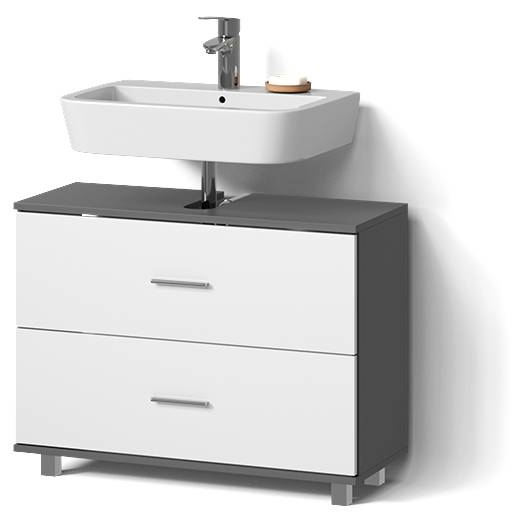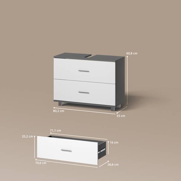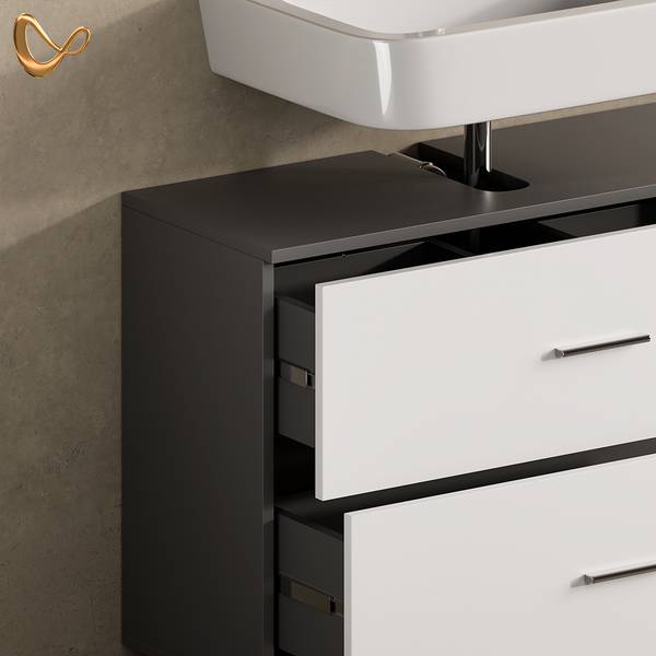 VIEL PLATZ: Unser Waschbeckenunterschrank bietet 2 große Schubladen und eine Aussparung für den Siphon - ideal für eine praktische und übersichtliche Organisatio
