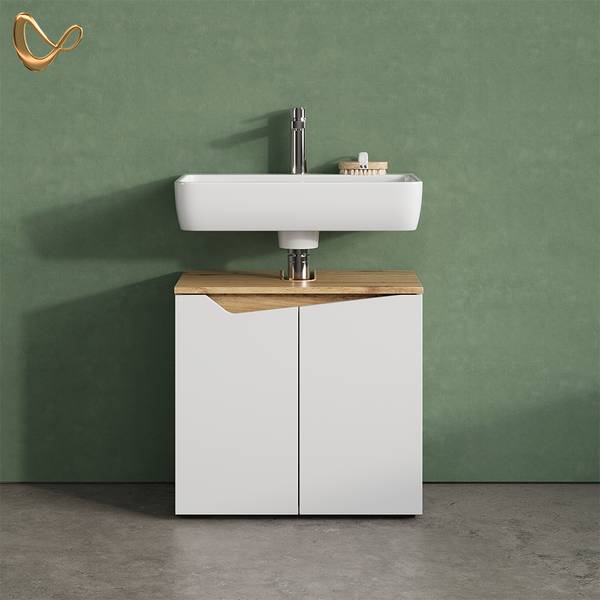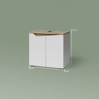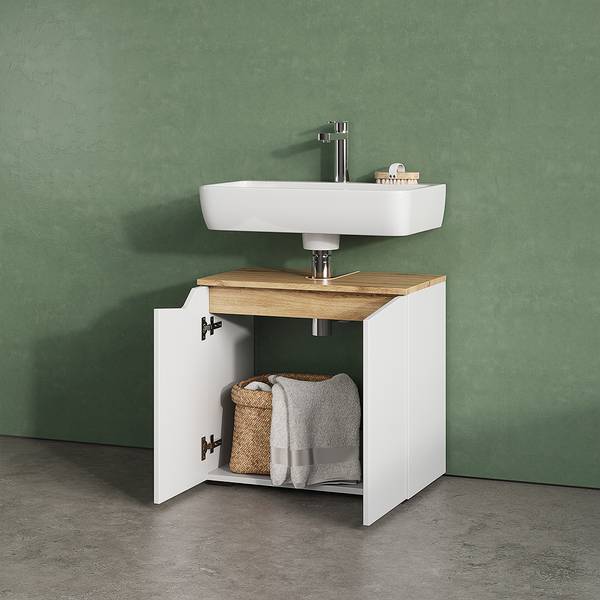 PRAKTISCH: Der Waschbeckenunterschrank mit zwei Türen und Siphonaussparung bietet optimalen Stauraum und lässt sich leicht montieren.