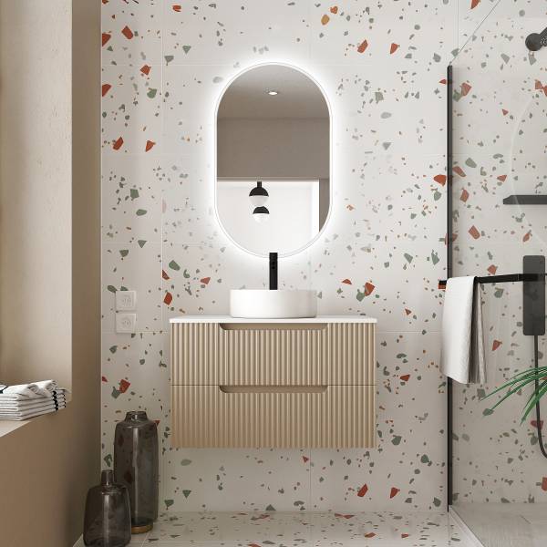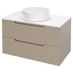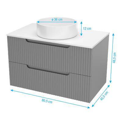 • Set bestehend aus: Waschtischunterschrank, Waschtischplatte, Keramik-Aufsatzbecken